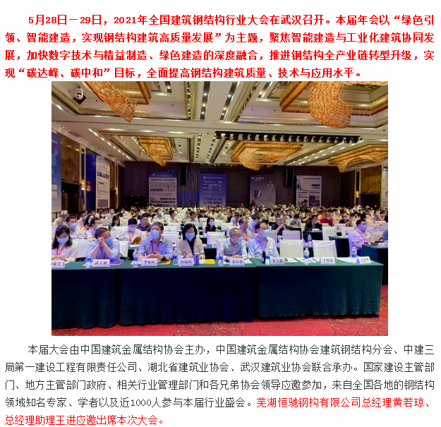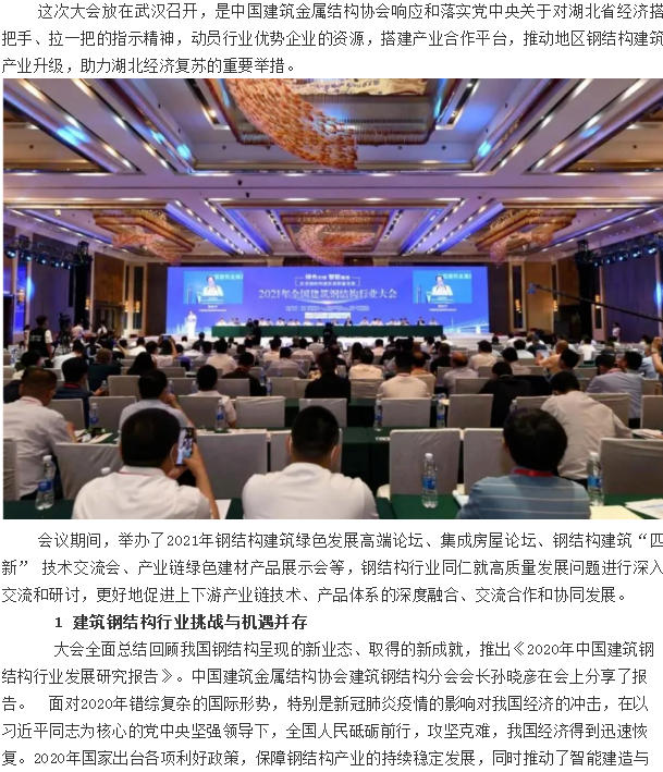 2021年全國建筑鋼結構行業(yè)大會在武漢召開