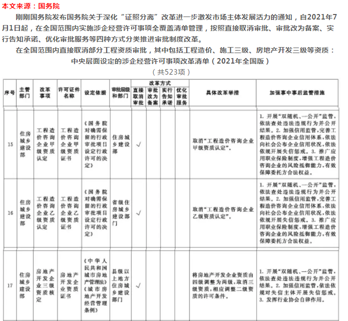 資質(zhì)大變革!剛剛國(guó)務(wù)院發(fā)文:全國(guó)范圍內(nèi)取消施工三級(jí)等資質(zhì)??!